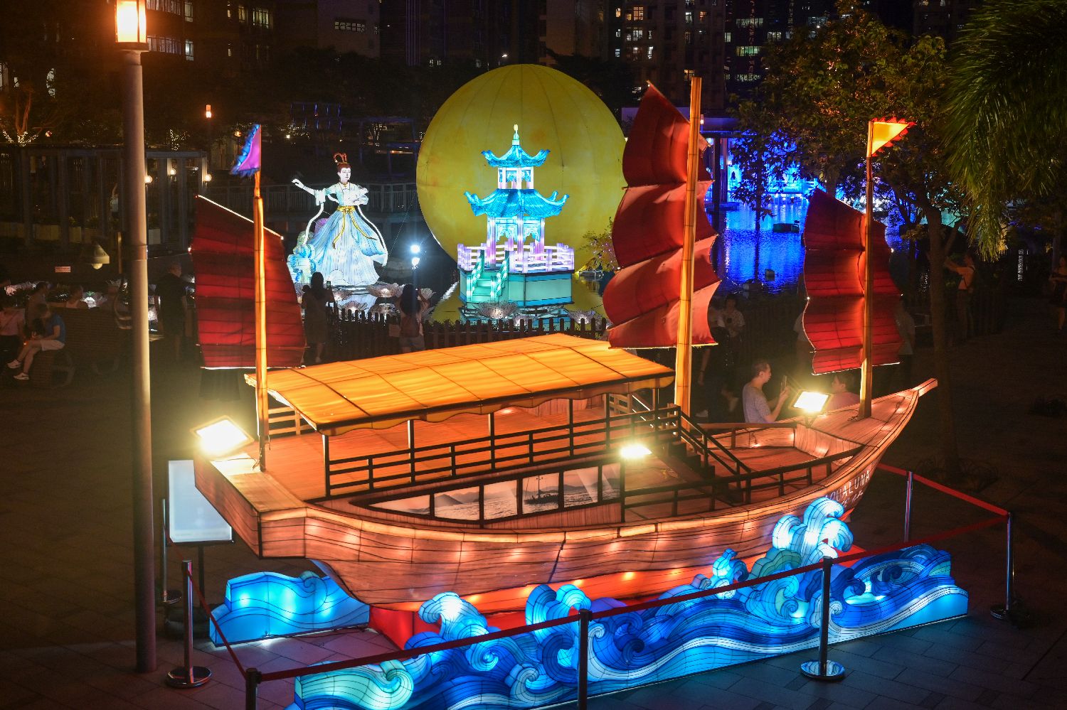 “川灯耀香江”中秋国庆灯会9月28日在香港西湾河爱秩序湾公园举行,灯会精心布置多个来自四川的大中型文化主题创意灯组,表达了“美好团圆、趣味神秘、共同发展”的意愿。