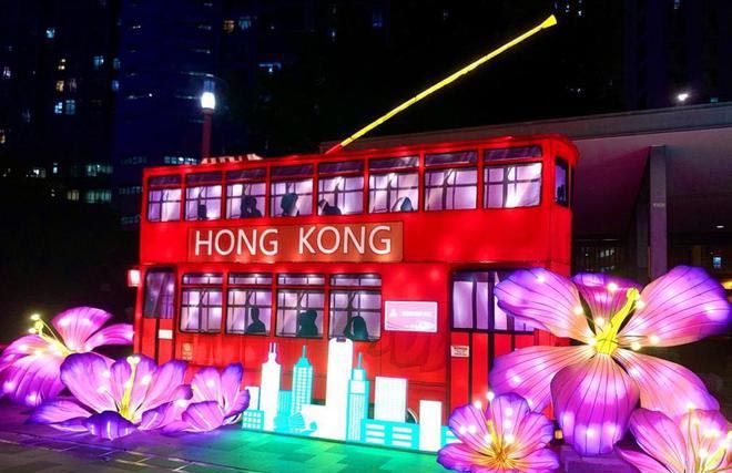 以香港双层巴士为主题的《香港印象》灯饰。(四川红星新闻网)