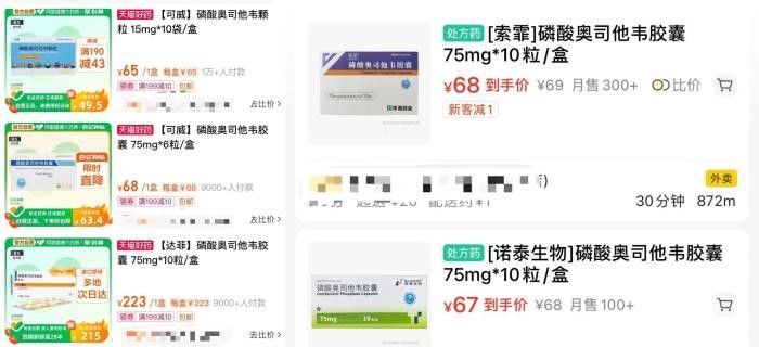 图为奥司他韦在电商平台销售的截图。(图/中新网)