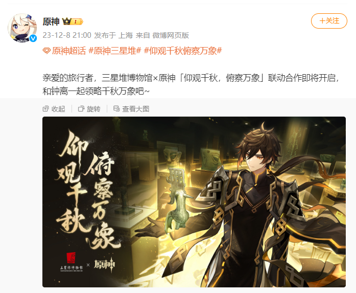《原神》与三星堆博物馆的联动海报。(图/微博@原神网页截图)