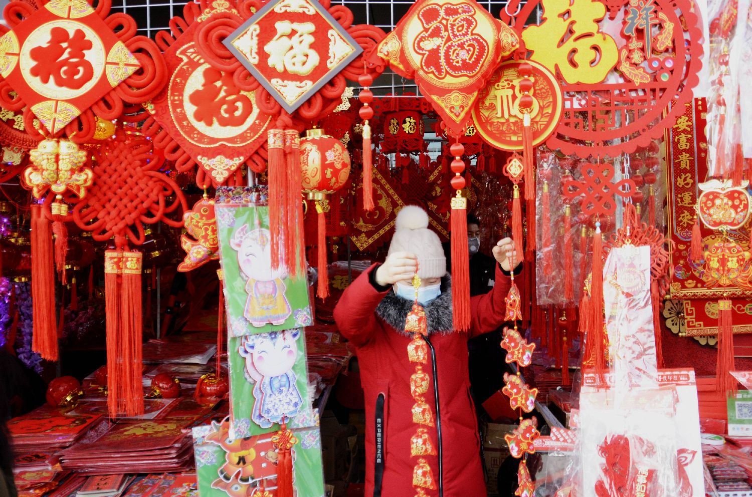 图为市民在一处市场选购春节装饰品的资料图。(图/新华社)