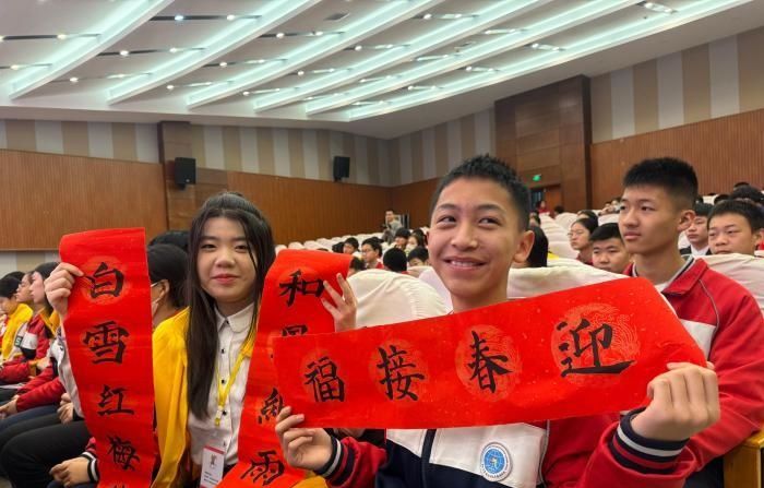 作为此次冬令营的“开胃菜”,海外华裔青少年与河南本地学生一一结对子,并互换纪念物。其中,有手写的贺岁春联,有手工制作的许愿星,也有用中外文字写下的祝福语。