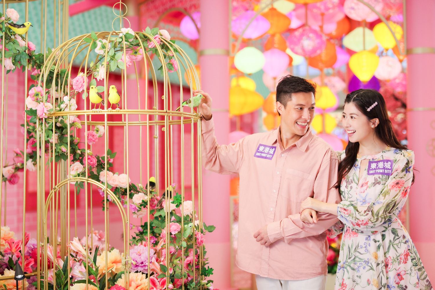 “繁花锦簇御庭园”新春主题装置,设置中式古朴庭园8大场景,并配以不同寓意的贺年花,祝愿龙年繁花似锦。 (香港中通社)