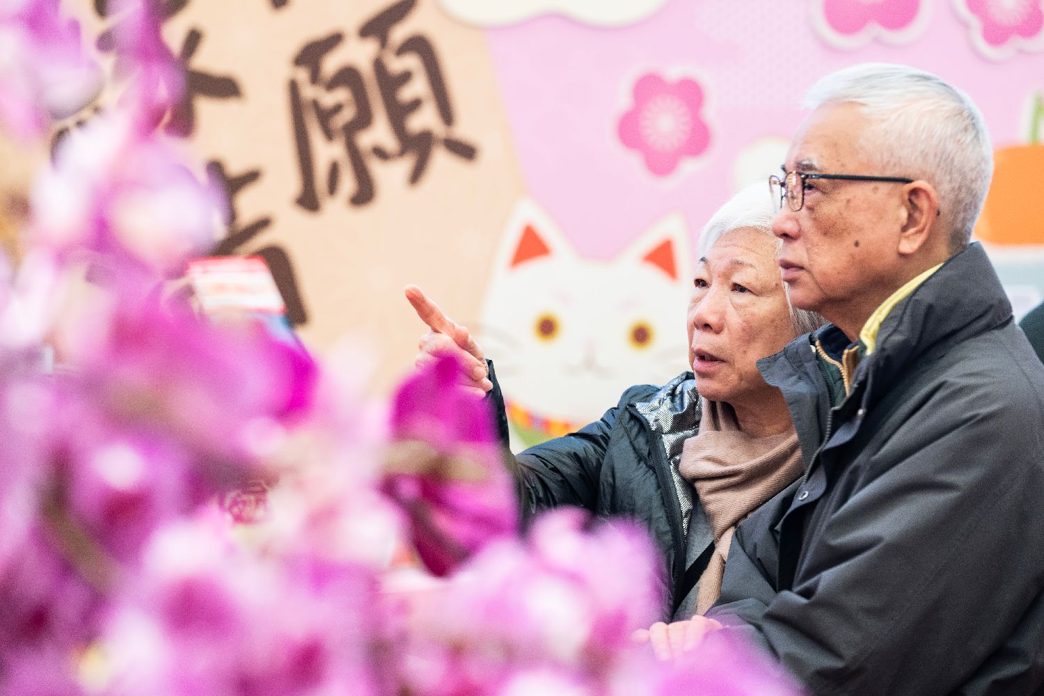 老年人在现场欣赏兰花。(中新社)