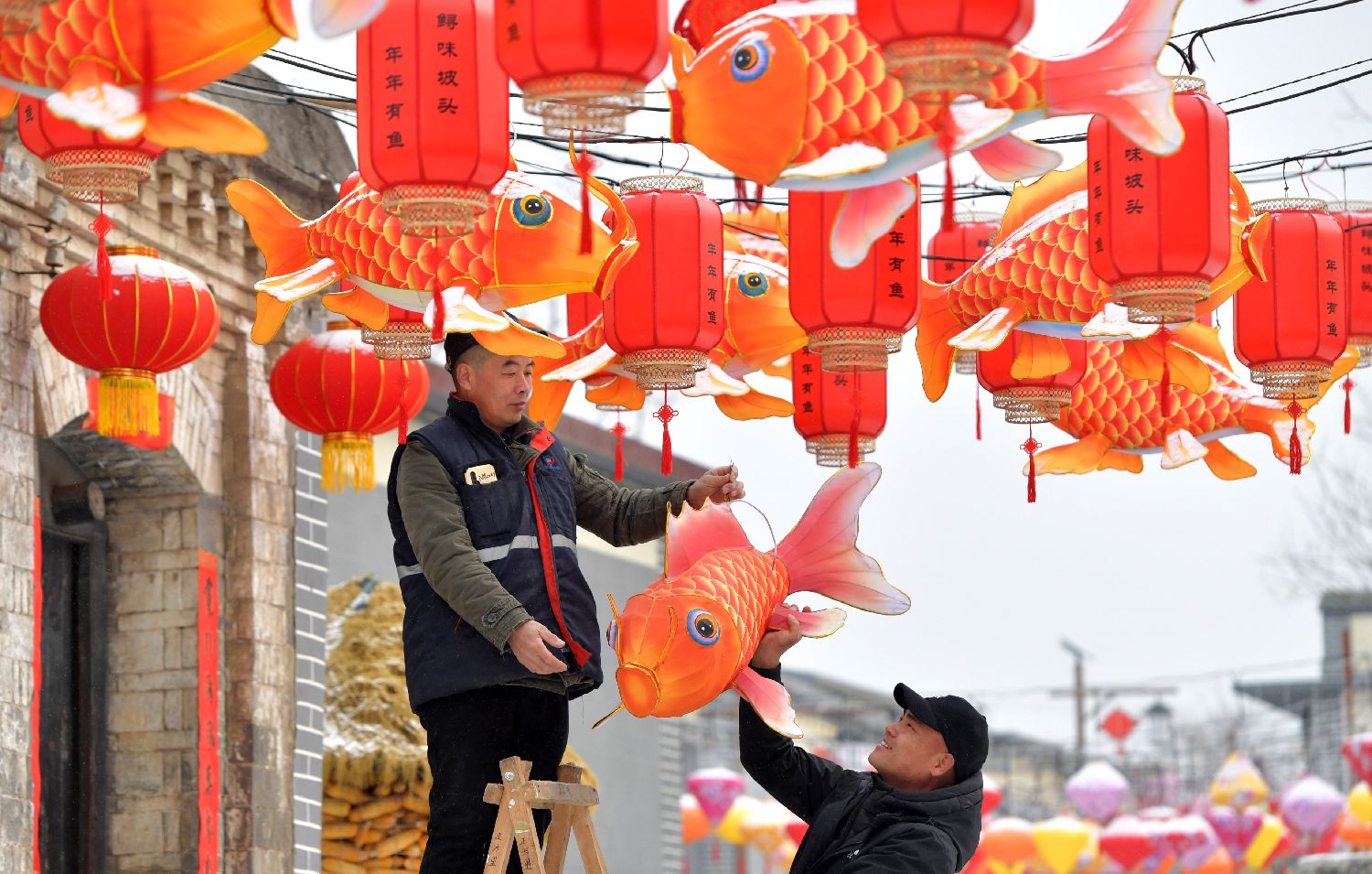 【扫房子】小年是腊月里一个比较重要的节日,是新年的开端,到了小年,也就意味着农历新年已经拉开了帷幕。俗话说,“小年做五事,如意一整年”。首先要做的就是扫房子。北方称为“扫房”,南方也叫“掸尘因尘”,与“陈”谐音,其用意是把穷运晦气扫出门。清扫干净屋子,中国民众会顺手将灯笼等烘托气氛的饰品挂出来,迎接新年的到来。图为2月1日,在河北省石家庄市井陉县坡头村,村民挂彩灯迎新春。(新华社)