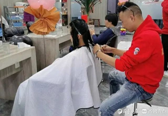 【沐浴理发】在中国传统习俗中,正月是不可以剪头发的,尤其是在北方地区,年三十晚上直到初二晚上这段时间是不能洗澡洗头的。所以小年这天,就需要沐浴理发,干干净净迎新春。图为1月30日,山东济南一家理发店内,理发师正在忙碌。(济南《齐鲁晚报》)