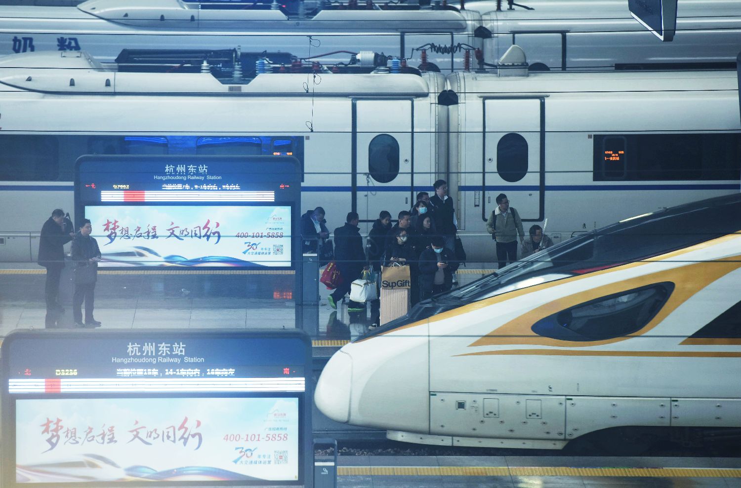 【团圆】不过,有一件事是不分南北的,那就是团圆!2月2日,中国各地迎来了节前返乡高峰,大批旅客候车,准备回家过年。图为旅客在杭州东站站台上准备乘坐高铁列车。(CFP)