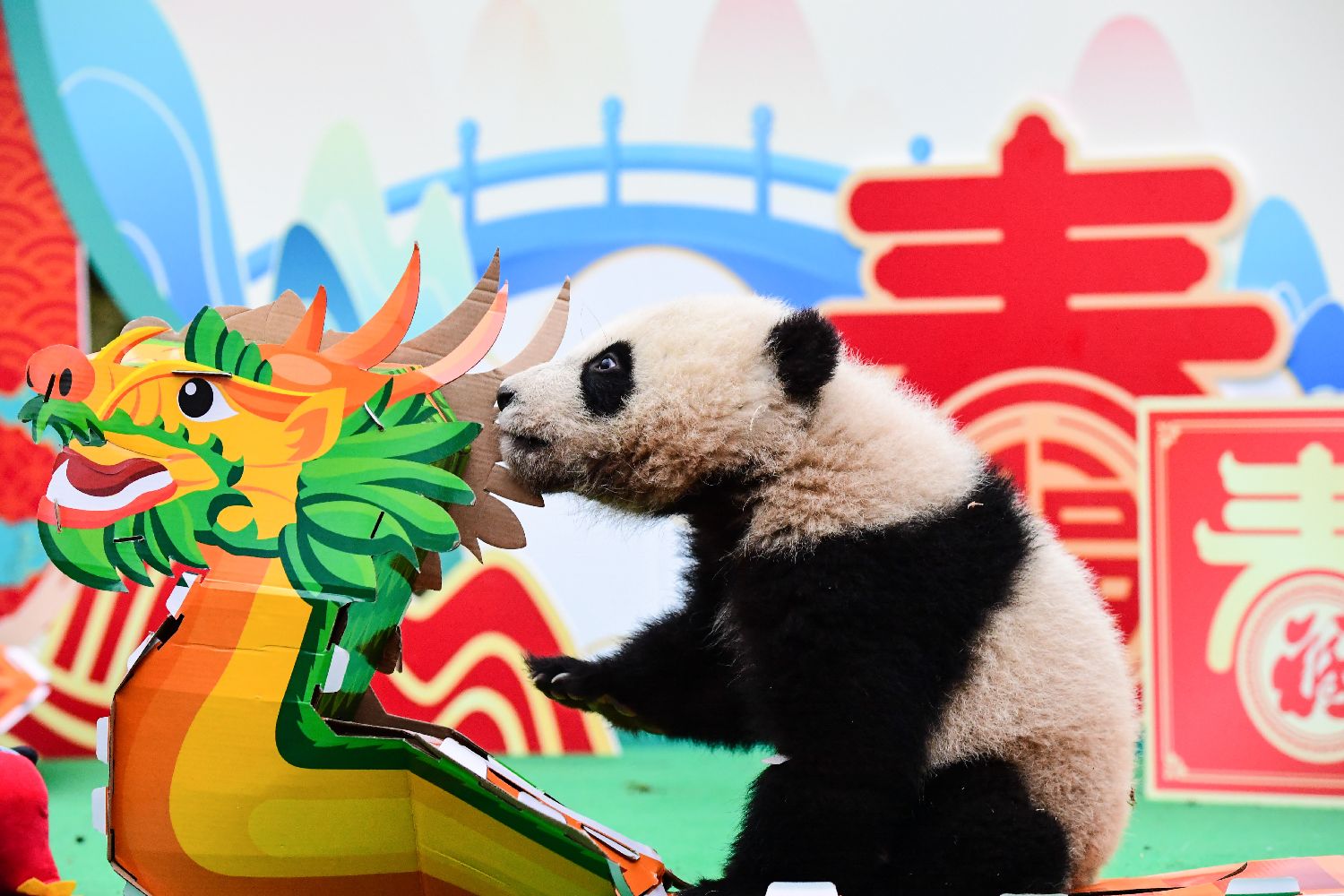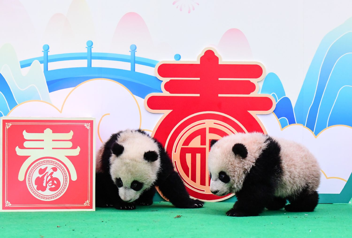 春节前夕,中国大熊猫保护研究中心和成都大熊猫繁育研究基地联合举办“龙年行大运 熊猫送福来”新春主题活动,2023年新生大熊猫宝宝集体亮相。据了解,两家机构2023年共成功繁育大熊猫34只,半岁左右的大熊猫宝宝成长状态良好,萌态十足。