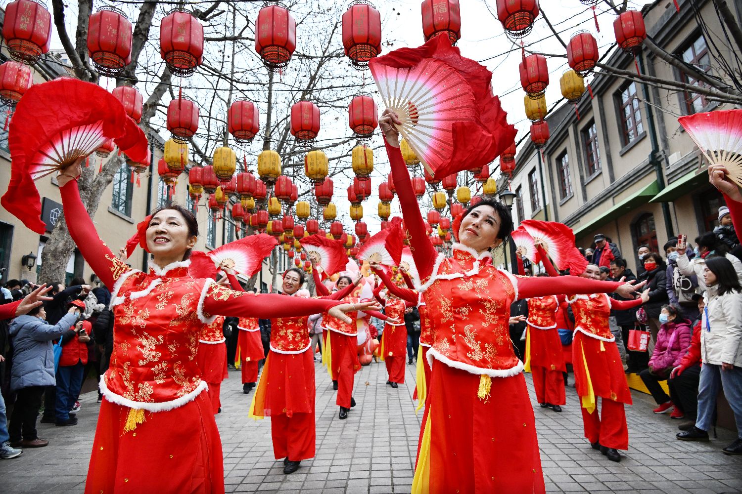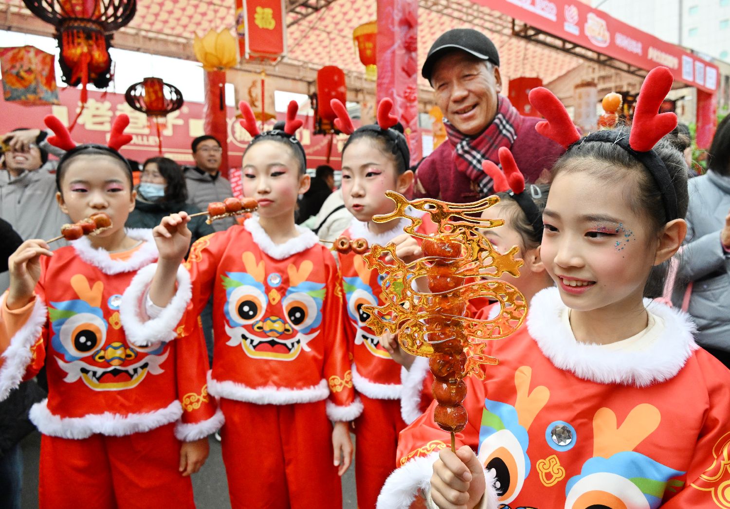 演员在萝卜·元宵·糖球会踩街仪式上表演。(新华社)