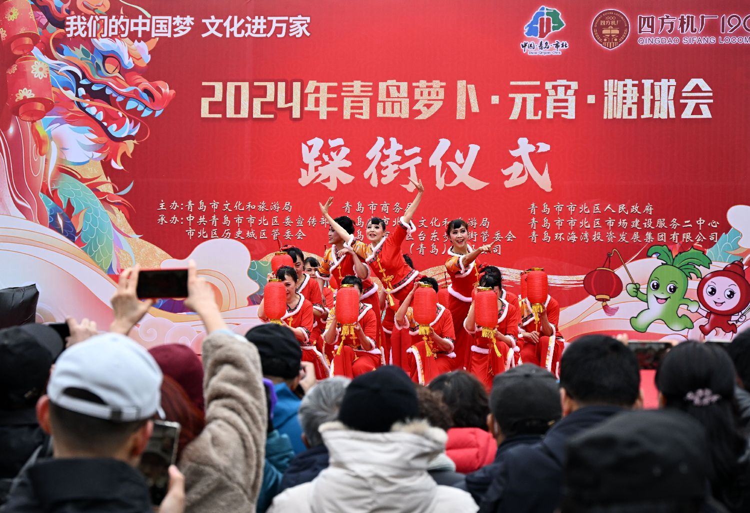 2月18日,2024年青岛萝卜·元宵·糖球会正式开幕,活动包含赏花灯、观舞龙、赶大集、游园会等特色民俗活动,吸引不少市民、游客前来参观。