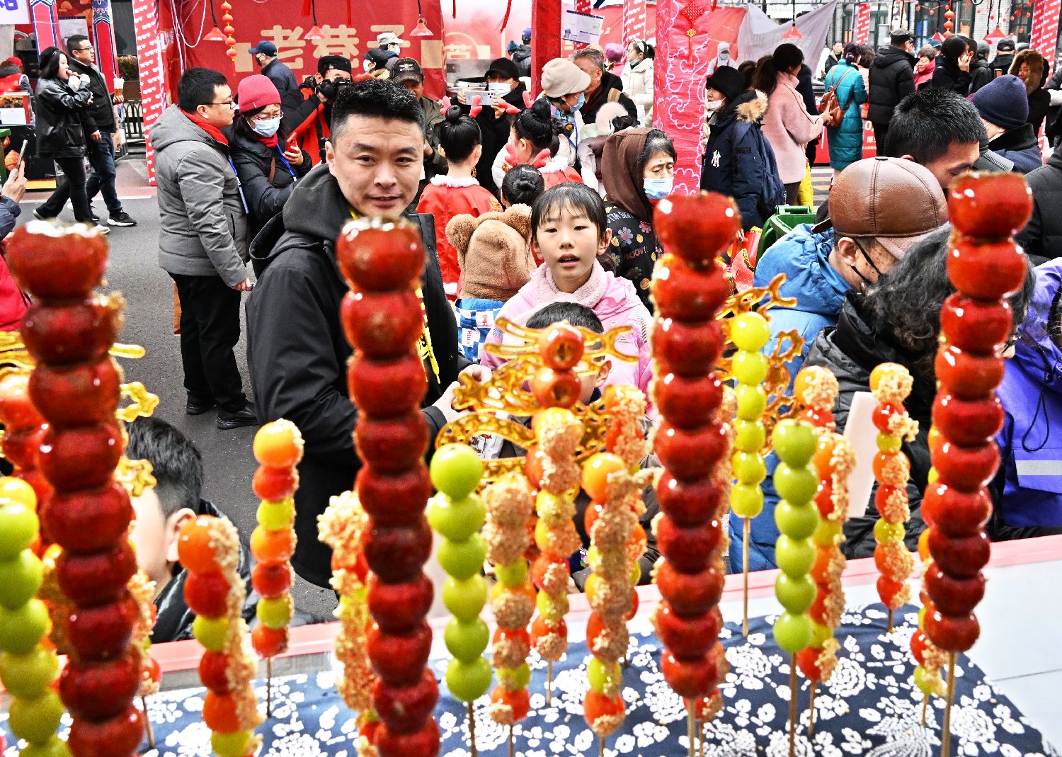 游客在萝卜·元宵·糖球会上选购糖球。(新华社)