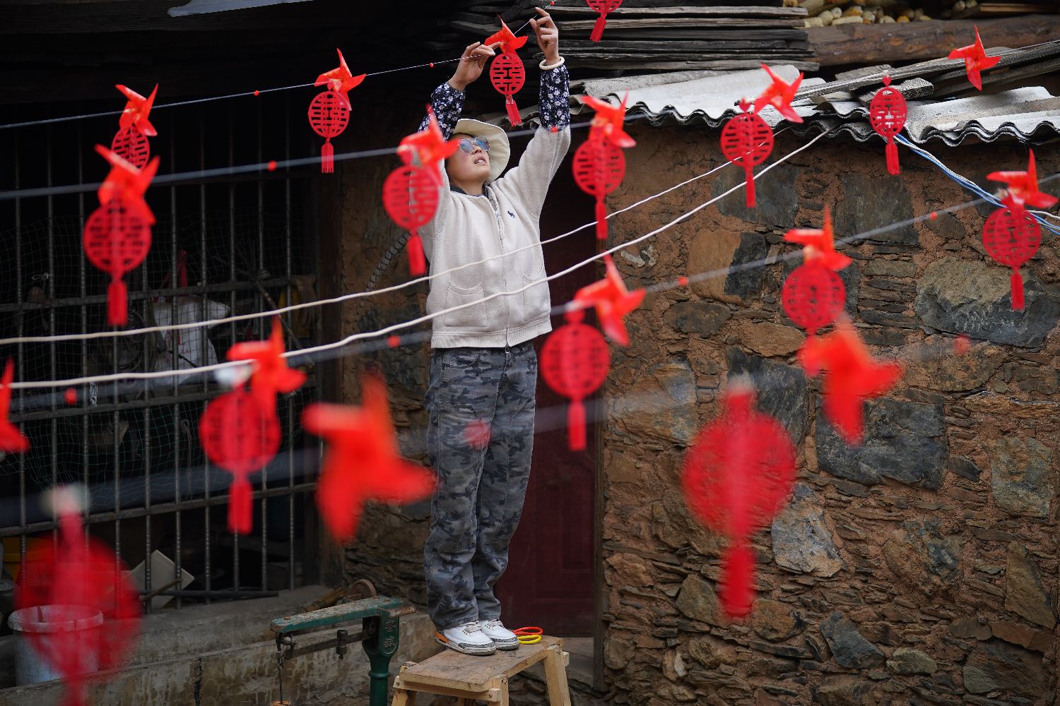 2月19日,新娘央宗措姆的亲戚在布置婚礼现场。(中新社)