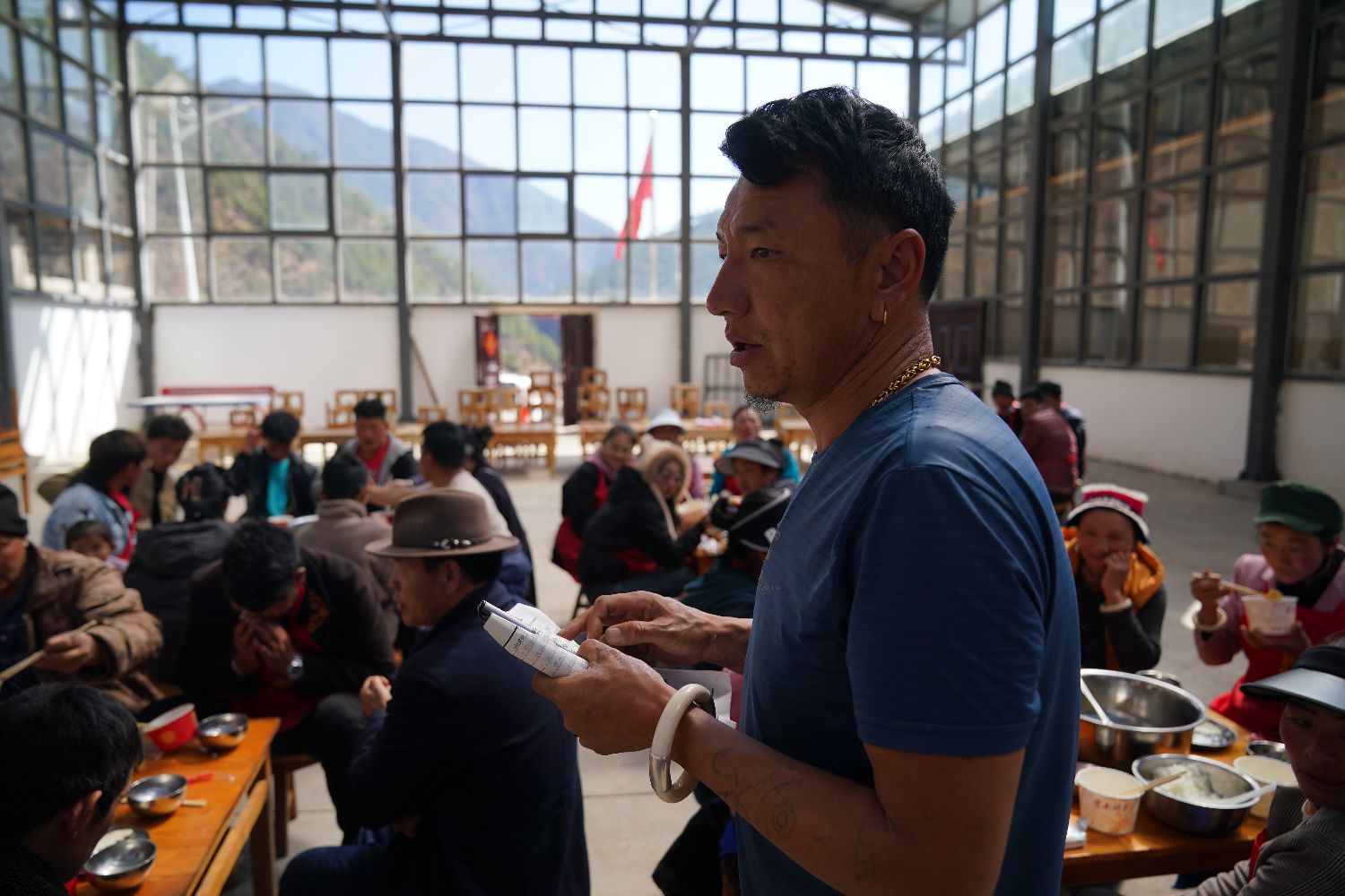 2月19日,婚礼“总指挥”在给前来帮忙的亲朋好友安排工作。(中新社)