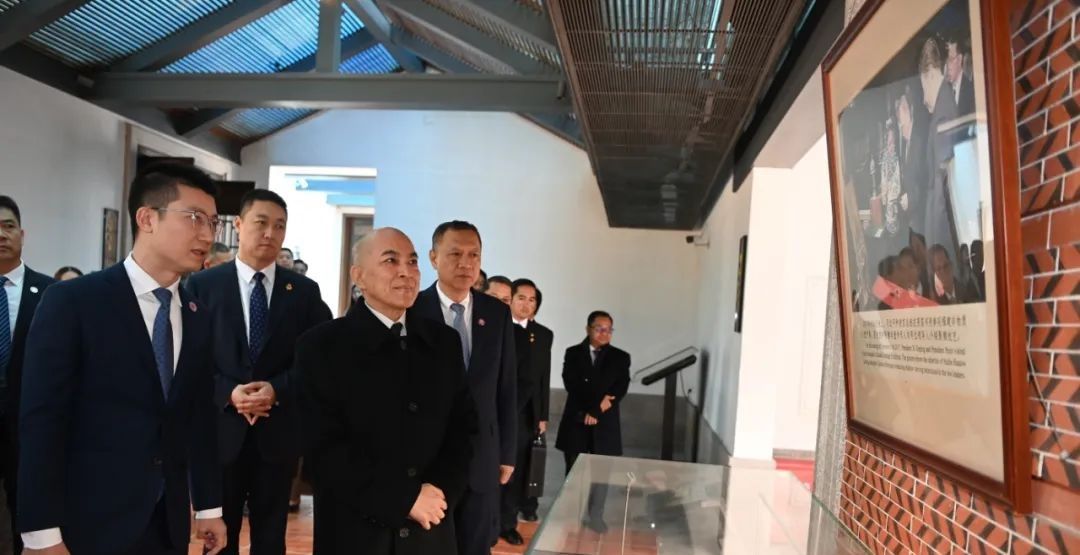 2023年12月21日,柬埔寨国王诺罗敦·西哈莫尼一行在厦门筼筜书院观看非遗展览。(图/中新网)