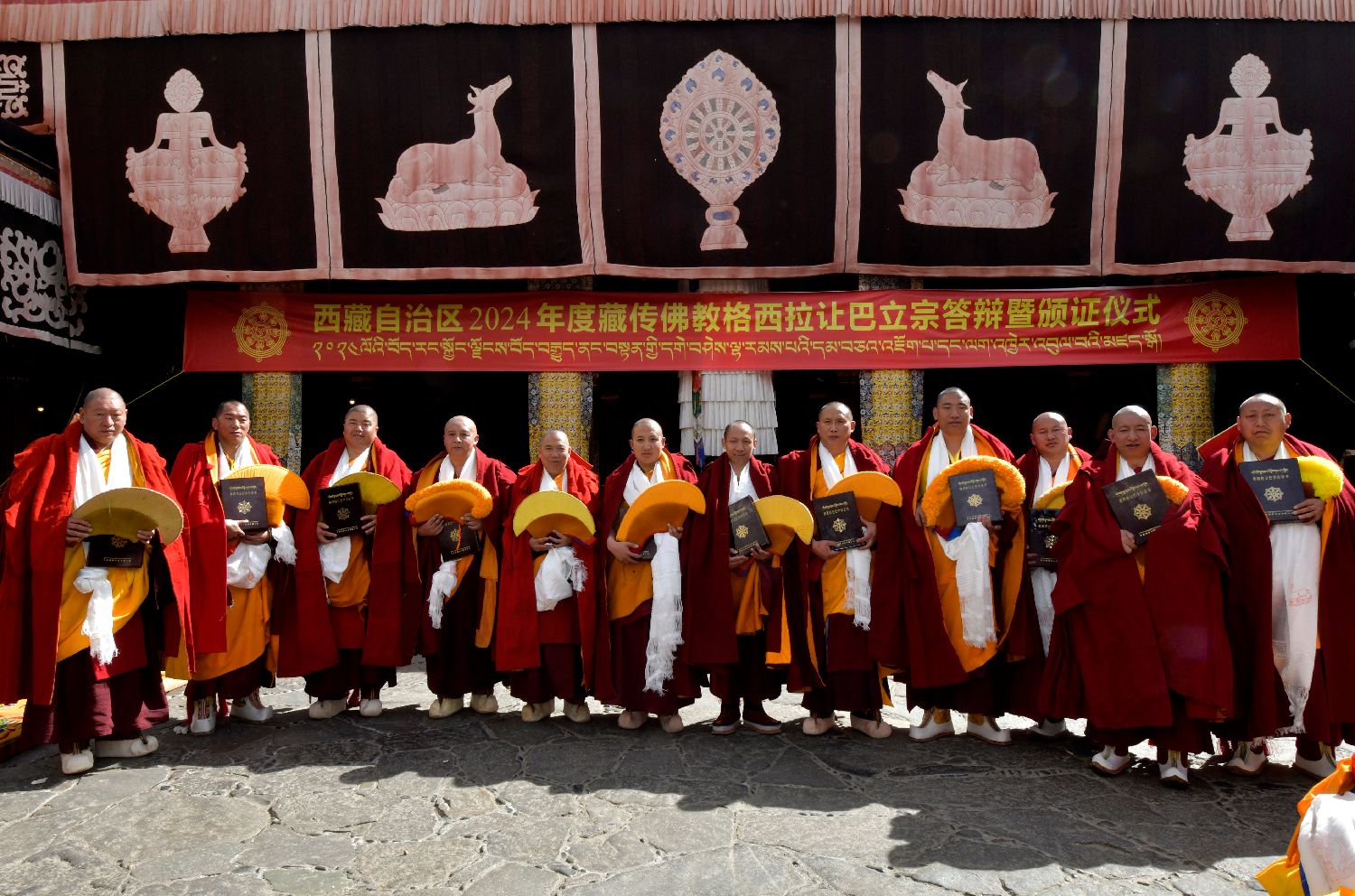 2月28日,西藏自治区2024年度藏传佛教学经僧人考核晋升格西拉让巴学位立宗答辩暨颁证仪式在拉萨举行,12名考僧获得藏传佛教格西拉让巴学位。格西,藏语意为“善知识”,格西拉让巴是藏传佛教格鲁派显宗高级学衔。