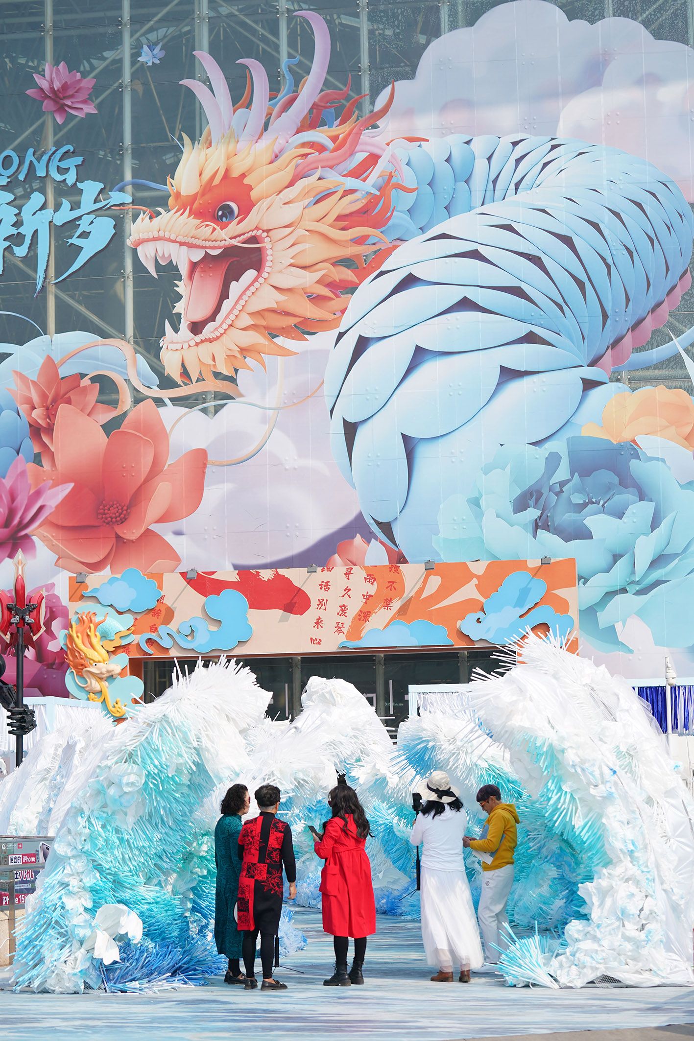 3月12日,“海浪”与龙年绘画相映成趣。(中新社)