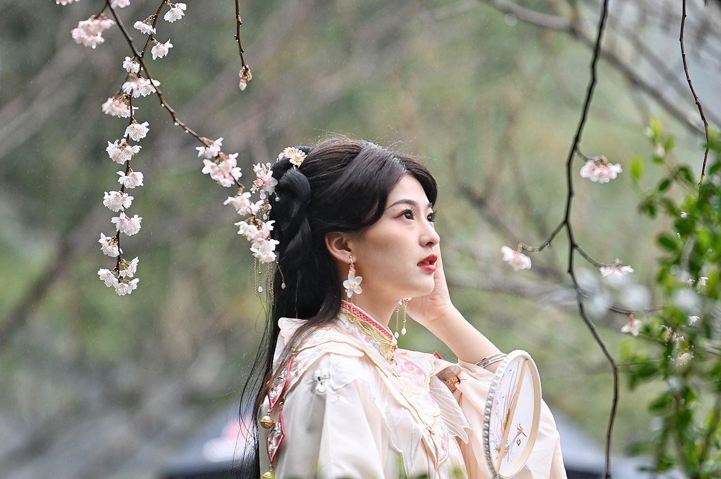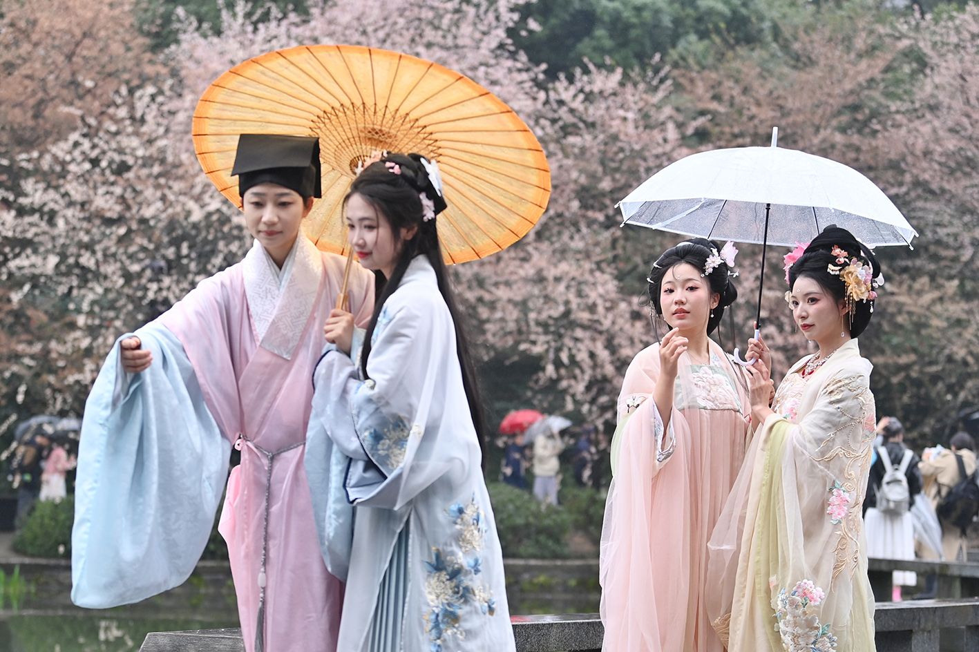 3月17日,长沙市望月公园举办“文润望月(甲辰)踏春赏樱季——早樱星语”活动,吸引众多古装爱好者身着古装游园,让市民在赏樱的同时,也能体验到国风潮流的魅力。