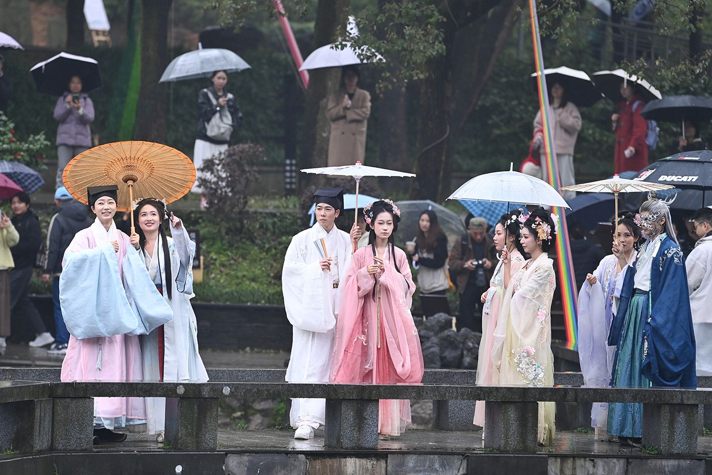 图为古装爱好者游园。(中新社)