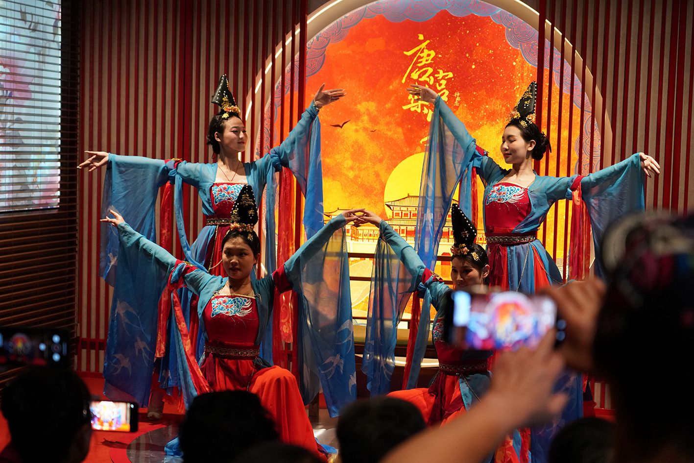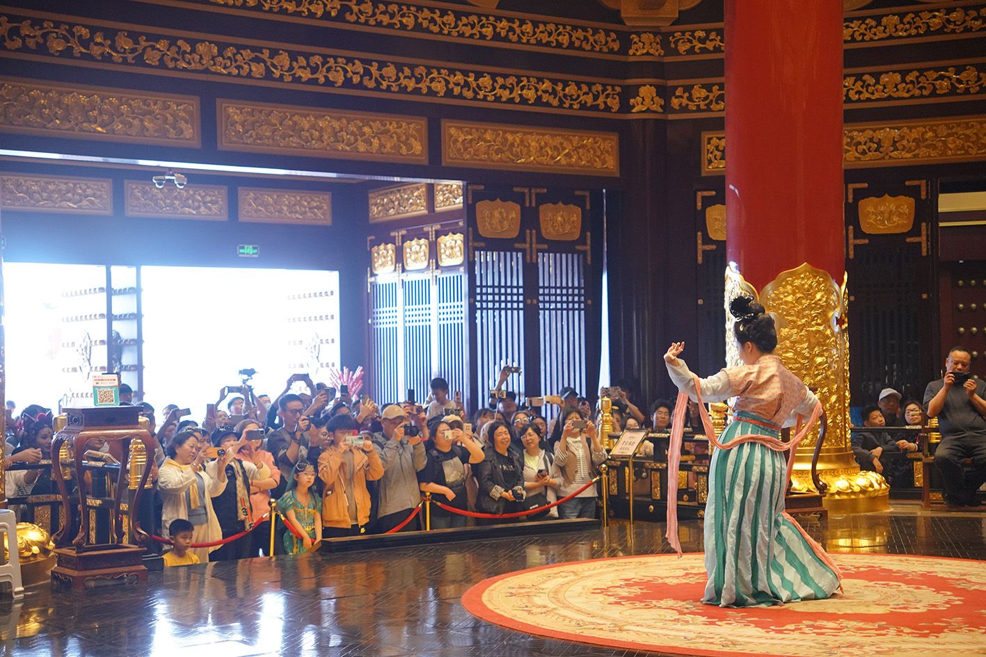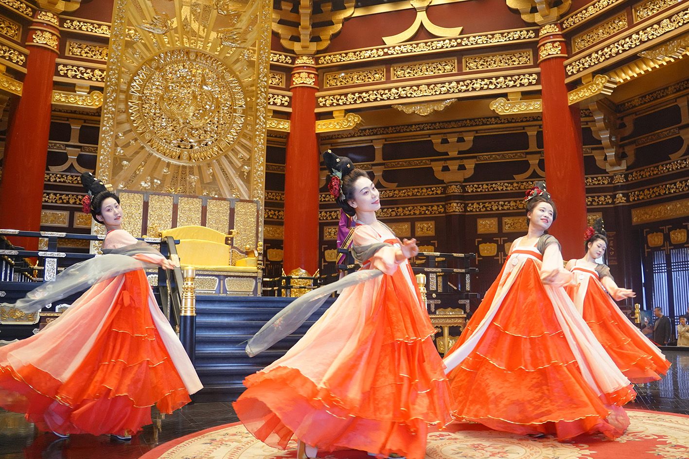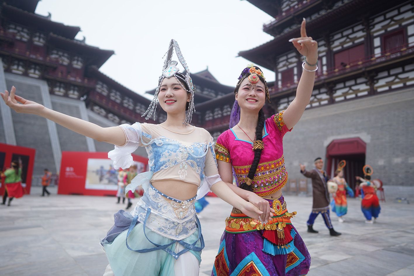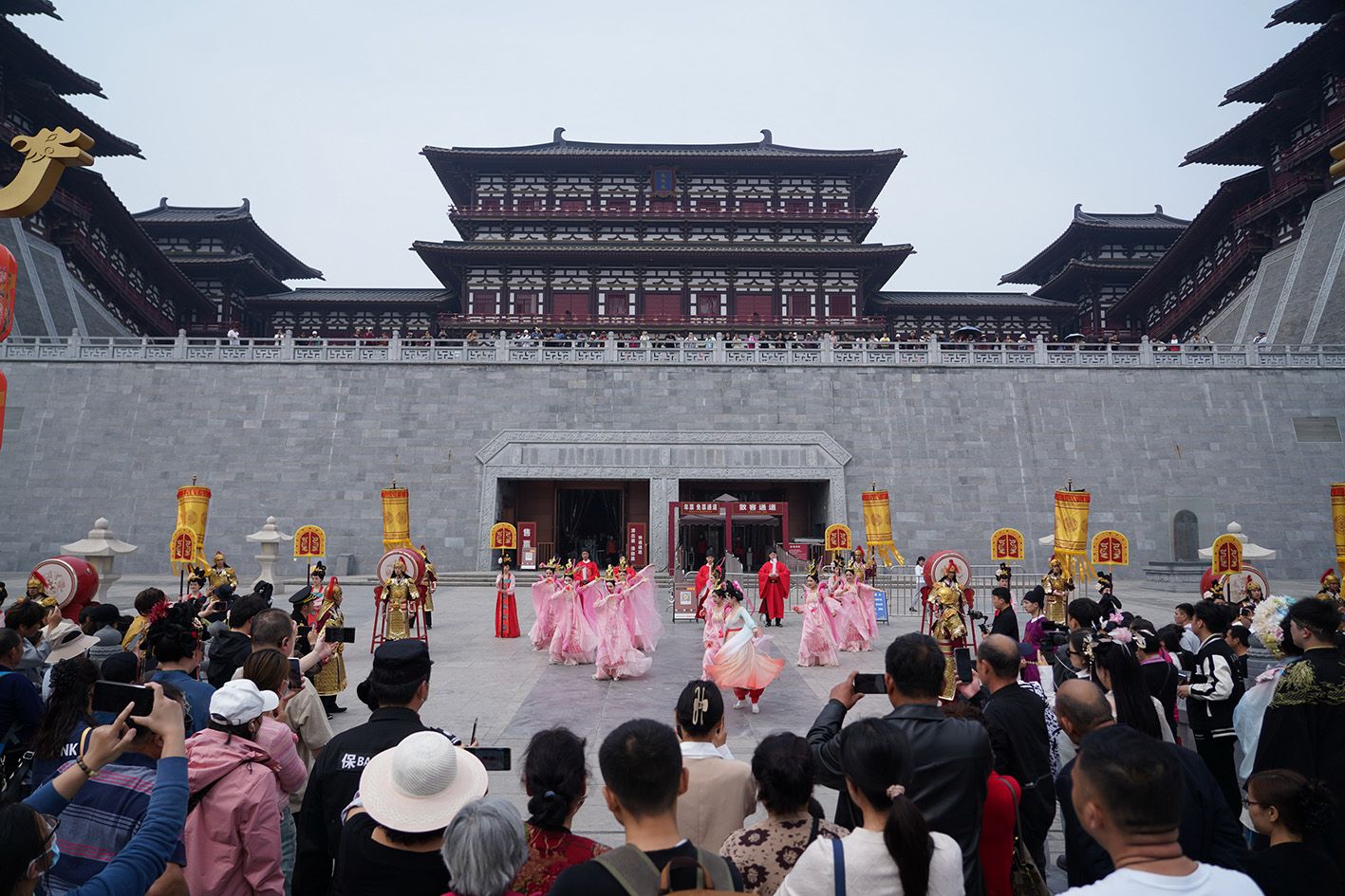 4月1日,河南洛阳隋唐洛阳城明堂景点上演《盛景霓裳》。(中新社)