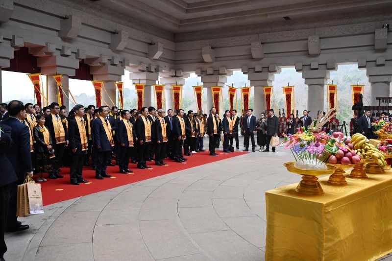 马英九一行瞻仰轩辕殿。(图/中新社)