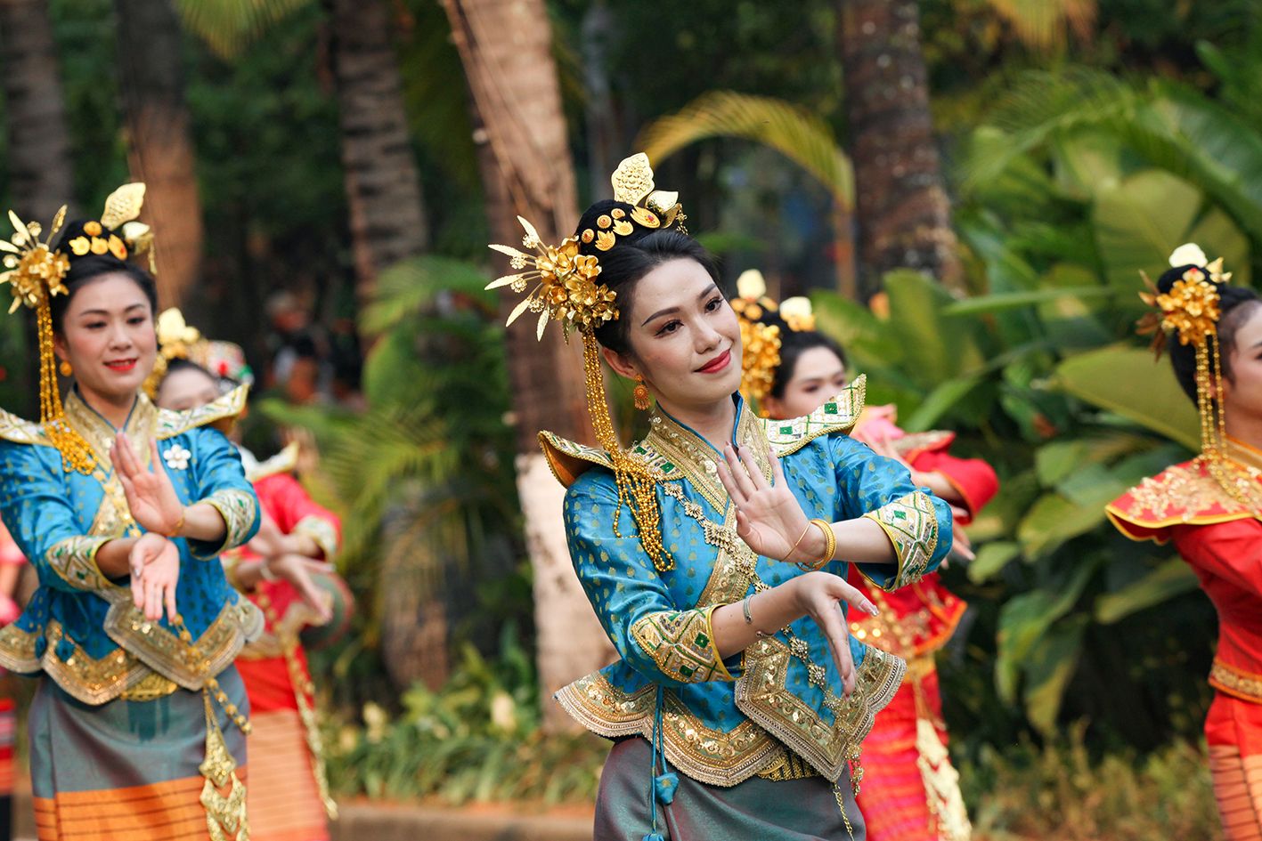 4月14日,云南省西双版纳傣族自治州在景洪市举办泼水节民族民间传统文化游演活动。(中新社)