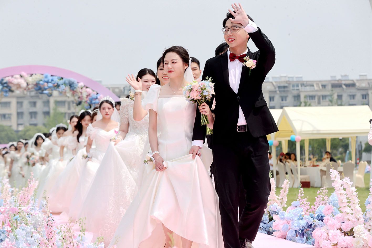 5月20日,中国多地举行集体婚礼,新人们在亲朋好友的见证与祝福下喜结连理。