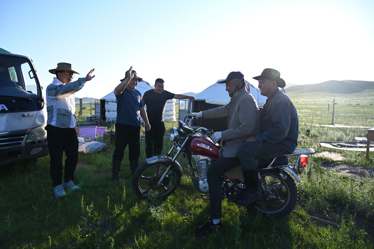 那仁达来送前来帮忙的亲戚回他们的营地。(中新社)
