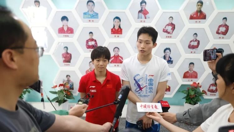 资料图:王宗源、全红婵接受采访。(图/中新社)