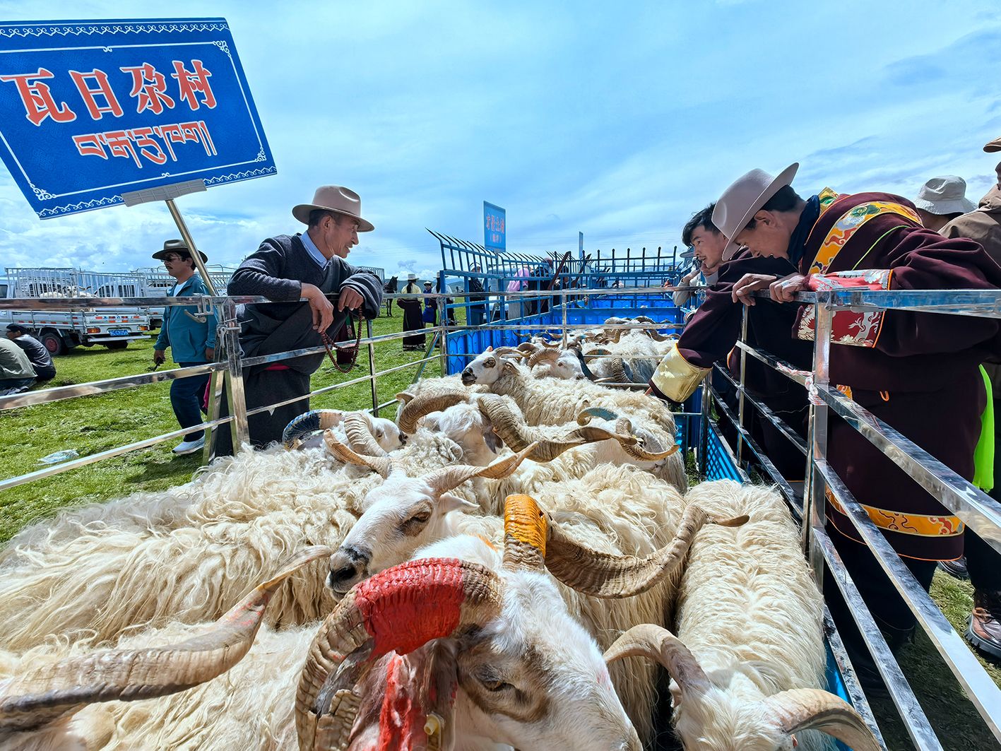 图为甘肃青海两省民众交流畜牧养殖经验。(中新社)