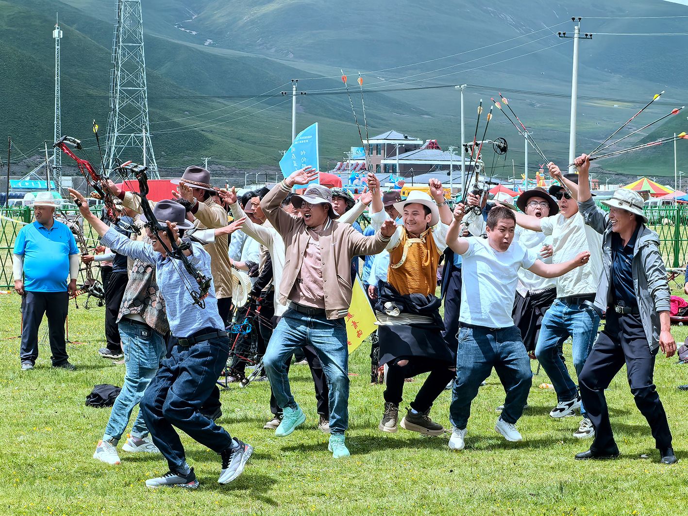 图为射箭比赛中民众欢呼雀跃。(中新社)