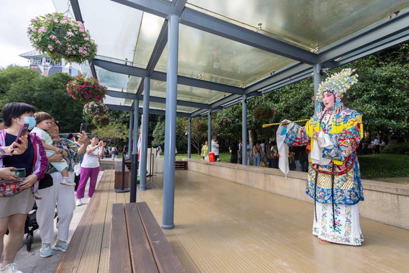 9月29日,上海市徐汇区庆祝中华人民共和国成立75周年游园会在徐家汇公园举办,人们观看戏曲表演。(新华社)