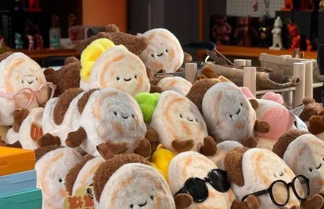 “一串香菇、一串蟹棒、一串年糕……麻辣烫下锅了,要微辣口味对吗?我再撒一点辣椒……您的麻辣烫做好了,请慢用!”一连串对话过后,顾客从店员手中接过的不是冒着热气的食物,而是由一捧毛绒玩具扎成的“麻辣烫花束”,这就是甘肃省博物馆近日推出的“毛绒版麻辣烫”。这幕由买家和卖家合力上演的“过家家”,是近来中国最火的文创产品销售方式。几乎同一时间,陕西西安也出现了以肉夹馍为原型的爆款文创产品“绒馍馍”。店员用塑料菜刀切开毛绒馍馍,再把毛绒肉馅夹进馍里,还会询问“要不要浇点汤汁”“是打包还是现吃”,给足情绪价值。“麻辣烫花束”和“绒馍馍”出圈后,中国各地文创品牌相继推出美食“过家家”。这波“过家家”风潮的鼻祖,是英国毛绒玩具品牌Jellycat。“过家家”这一模式是Jellycat去年推出的新玩法。无论是英国Jellycat玩偶,还是中国各地文创品牌推出的产品,都是主打情绪价值,让消费者觉得自己购买的不只是一件商品,而是一段令人愉悦的美好体验。图为甘肃省博物馆内的“玩偶麻辣烫”。(甘肃省博物馆文创团队小红书)