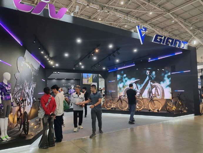3月26日,2025年台北自行车展在南港展览馆开幕。图为台湾品牌捷安特(Giant)的展区。(图/中新社)