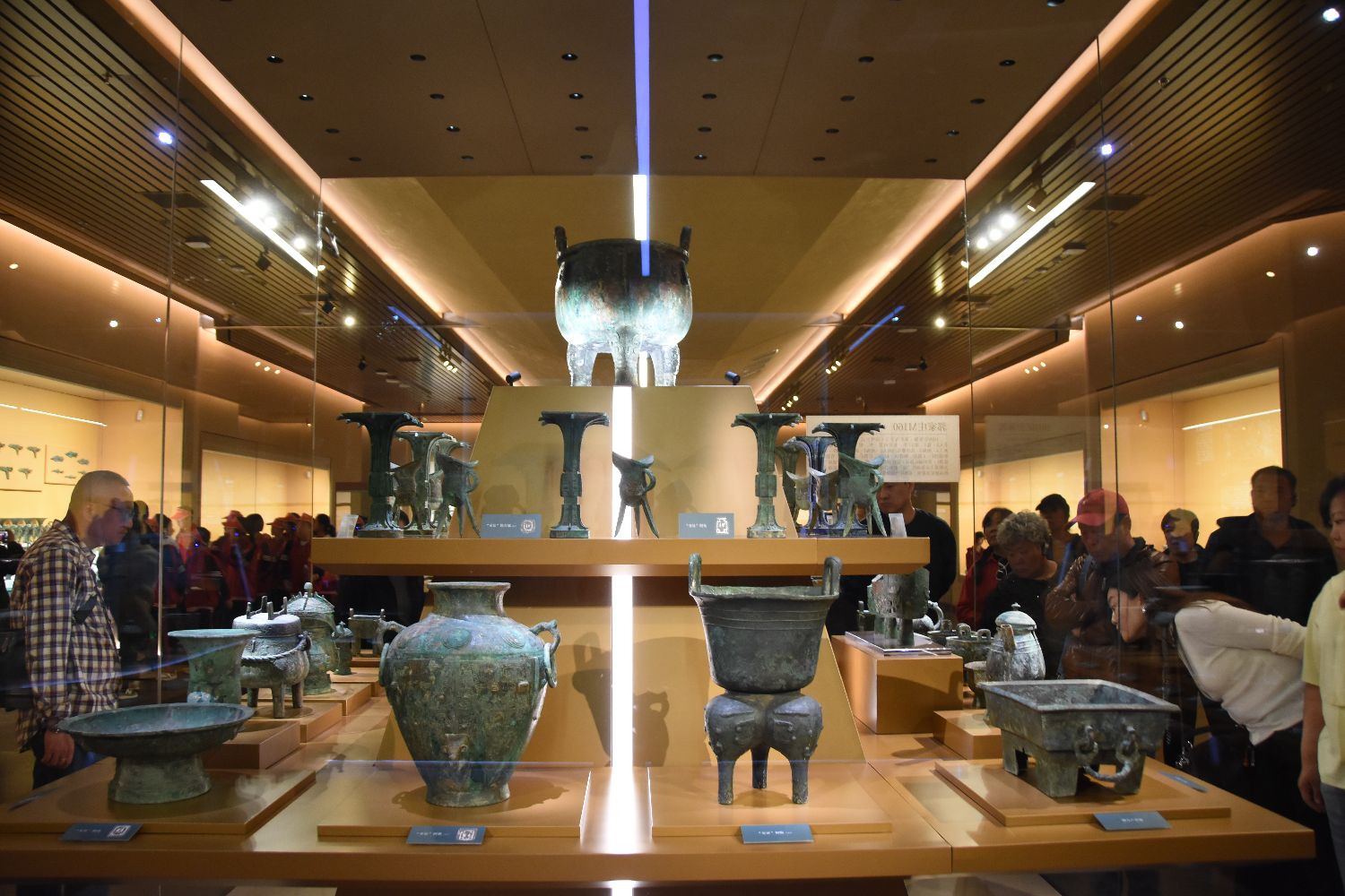 4月2日,河南安阳,游客在殷墟博物馆观看商代青铜器。(图/中新社)