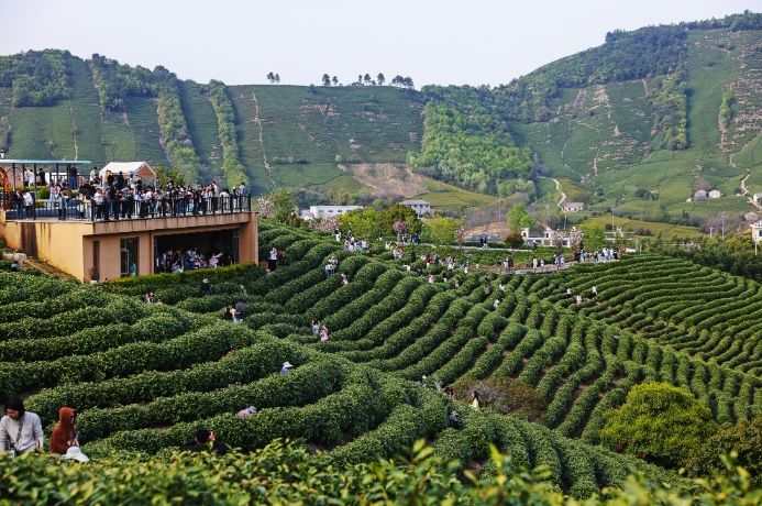 清明节假期,浙江省安吉县溪龙乡游人众多,图为当地茶山一景。(图/浙江省安吉县溪龙乡)