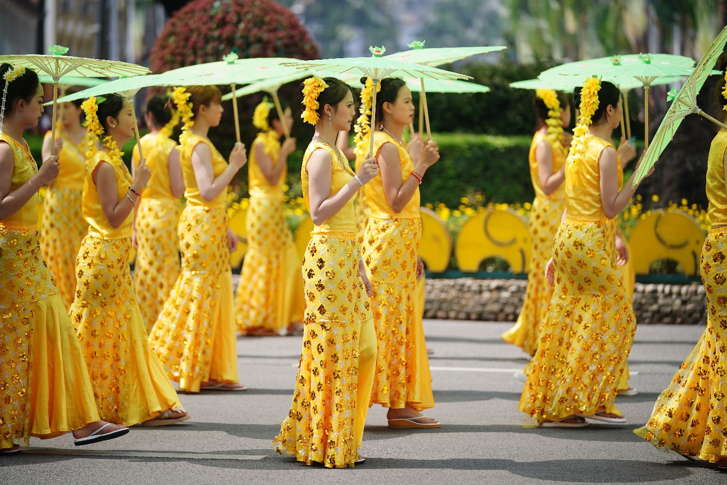 “水水水水水……”伴随着铓锣、象脚鼓的乐点,身着盛装的傣族姑娘跳起欢乐的舞蹈,中国云南近日变身“水上乐园”,多地举行泼水节活动,庆祝泼水节。