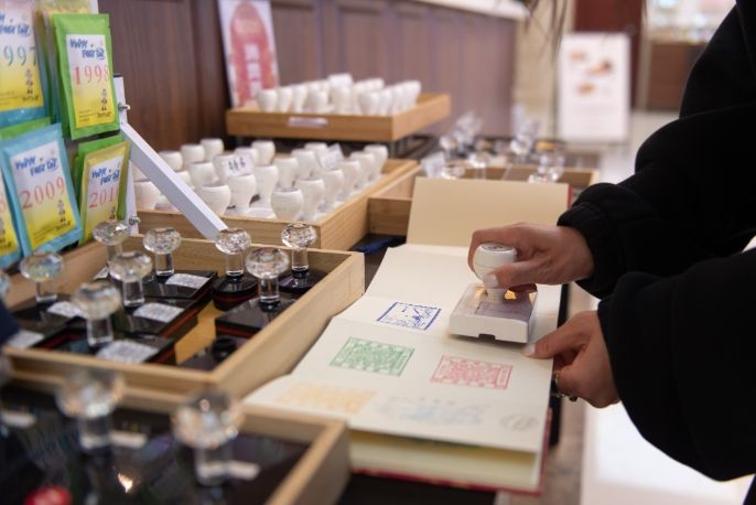 2025年4月,游客在烟台大龙邮局内集章。(图/中新社)