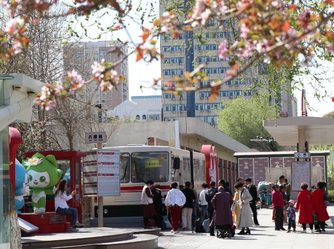 23日,位于乌鲁木齐市中心的“八楼主题车站”,花红柳绿间,一众市民和游客争相拍照打卡。