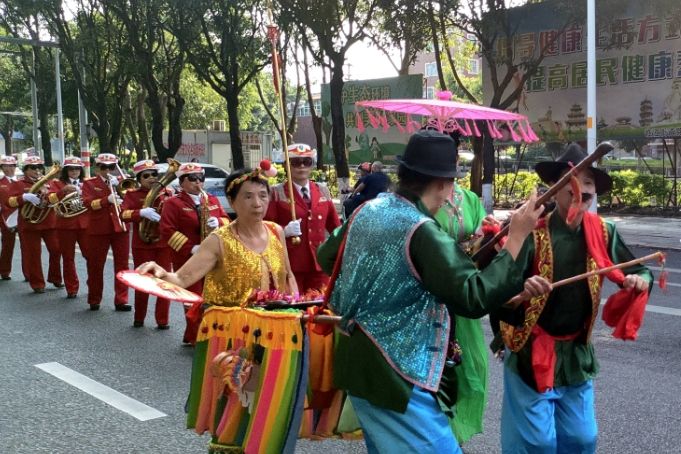 当天下午,大鼓吹、火鼎公婆、拍胸舞、南音等传统演出阵头沿着泉州义全街、中山南路、万寿路一路表演,吸引众多民众驻足观赏,两岸信众或随行护驾或沿路祭拜。