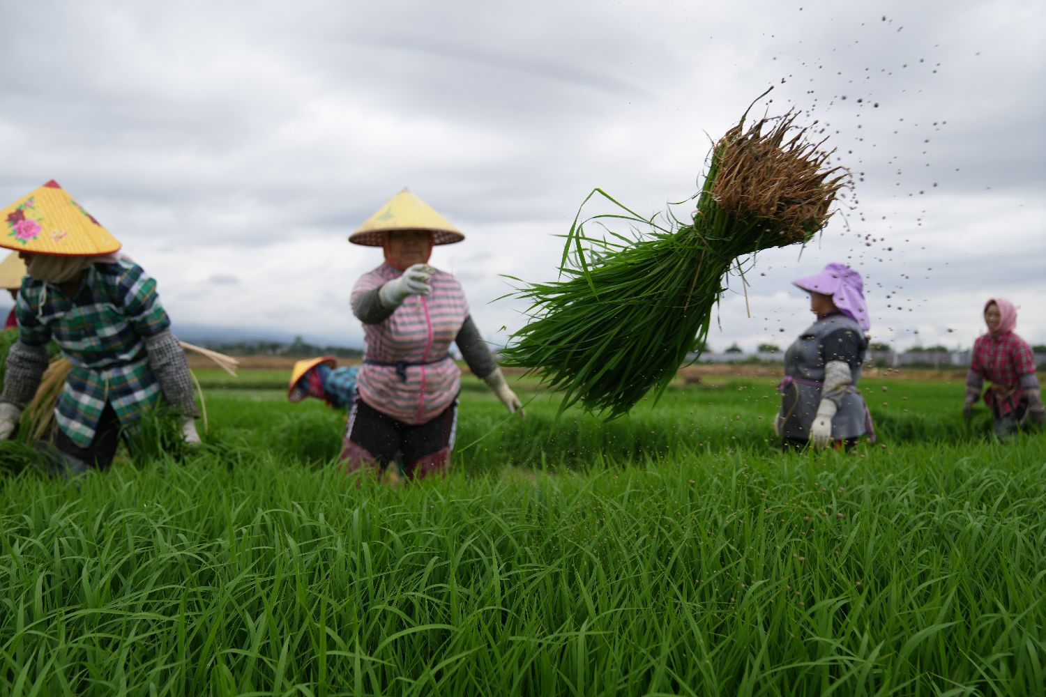 5月21日,在云南瑞丽,村民抢抓农时开展农事活动,田间地头呈现一派繁忙景象。(中新社)