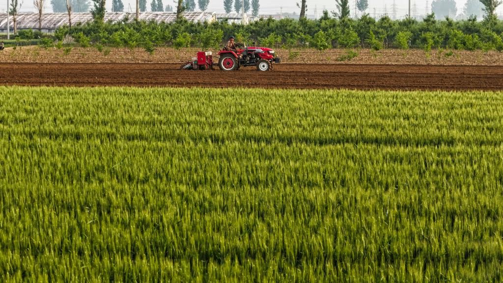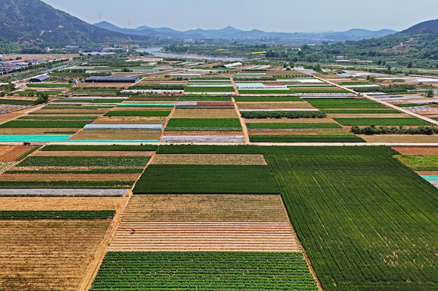 5月21日适逢农历小满节气,山东省烟台市福山区农民抢抓农时忙农事,田间地头处处绿意盎然、生机勃勃。图为农民在山东省烟台市福山区高疃镇高疃村田间劳作。(中新社)