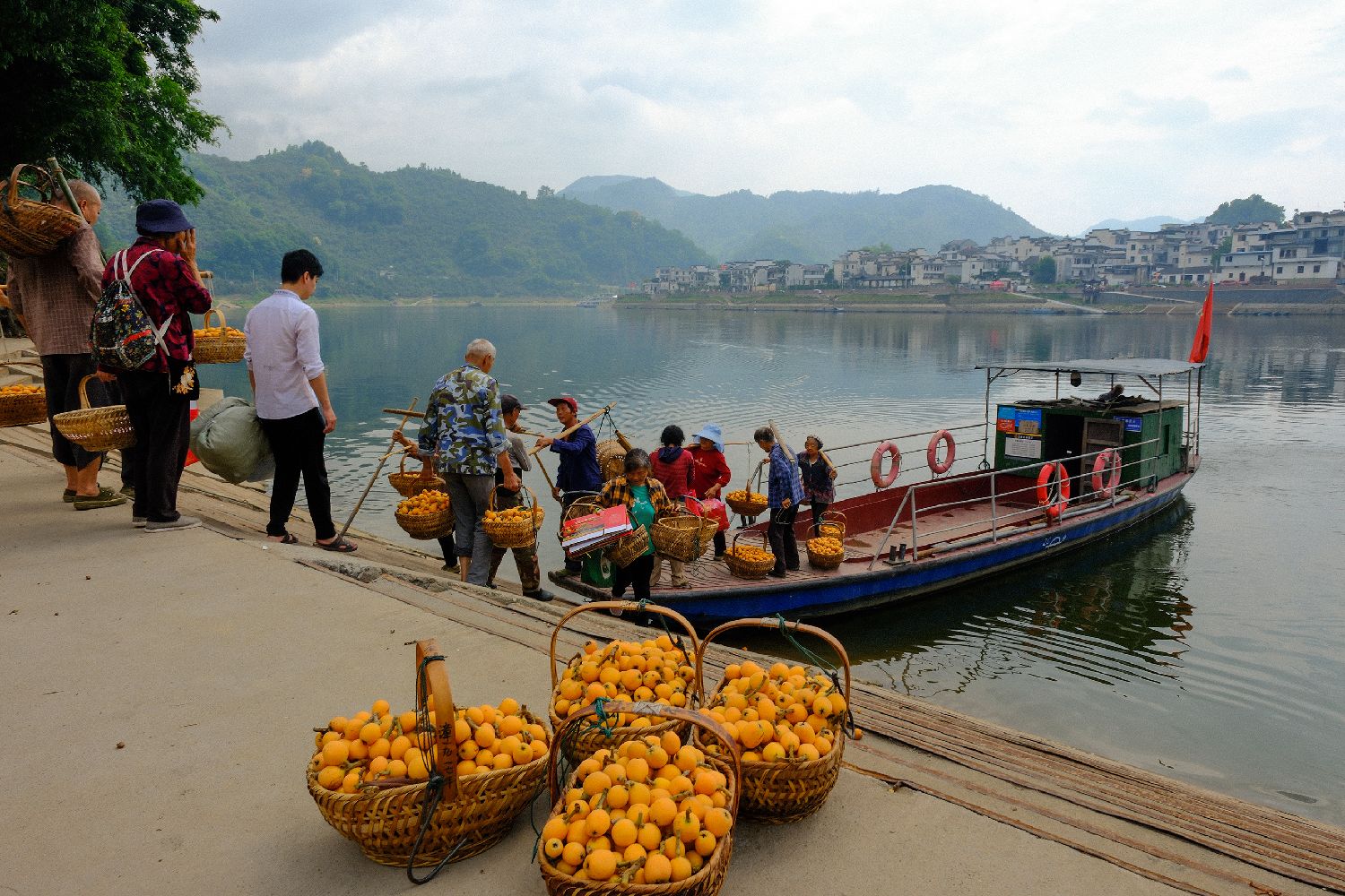 5月20日,果农乘船将刚釆摘的枇杷送往歙县漳潭村枇杷交易市场。近日,安徽黄山市新安江畔歙县三潭枇杷进入成熟采摘期,当地果农趁晴好天气忙着采摘、销售。三潭枇杷因产于新安江畔的漳潭、绵潭和瀹潭三个村而得名,已有800多年栽培历史。(中新社)