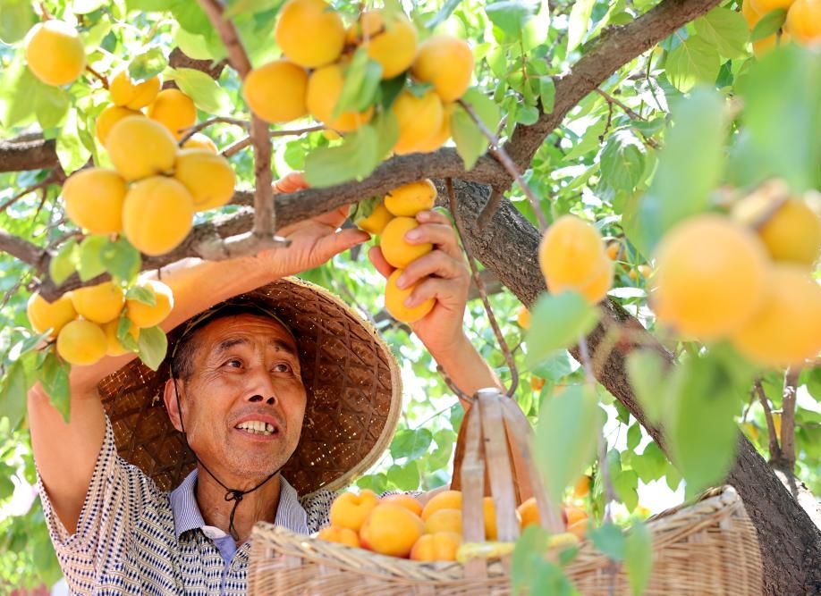 5月20日,山东省枣庄市市中区齐村镇凤凰岭村农民在果园采摘鲜杏。(新华社)