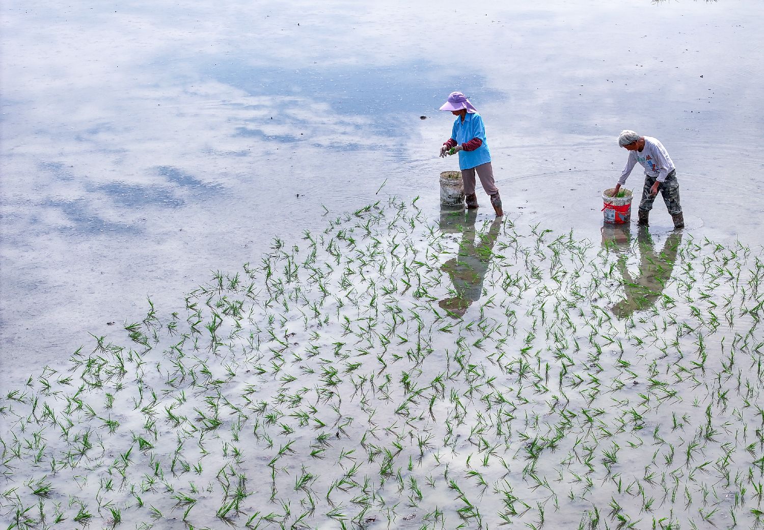 5月28日,农民在重庆市黔江区中塘镇兴泉社区有机水稻基地插秧。(新华社)