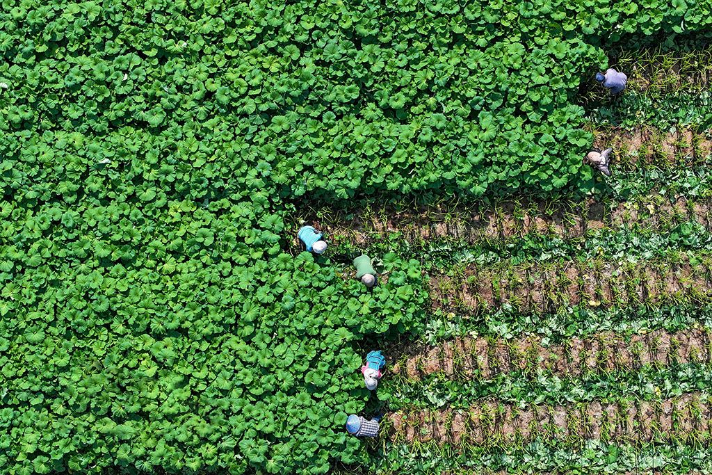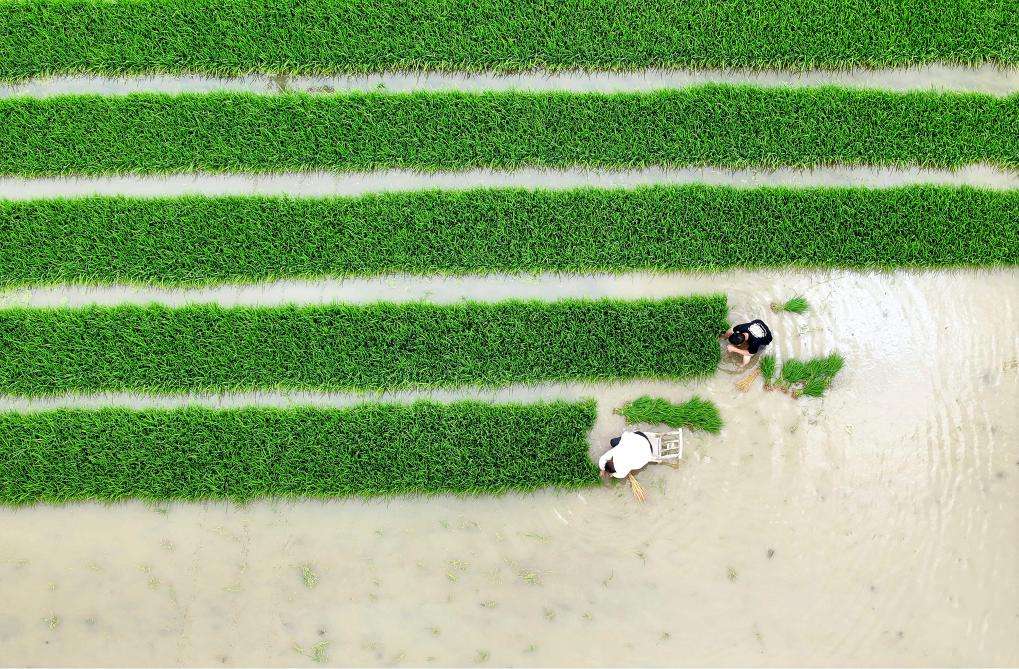 芒种节气将至,浙江湖州各地农民抢抓农时忙农事,田间地头一派忙碌景象。(人民图片网)