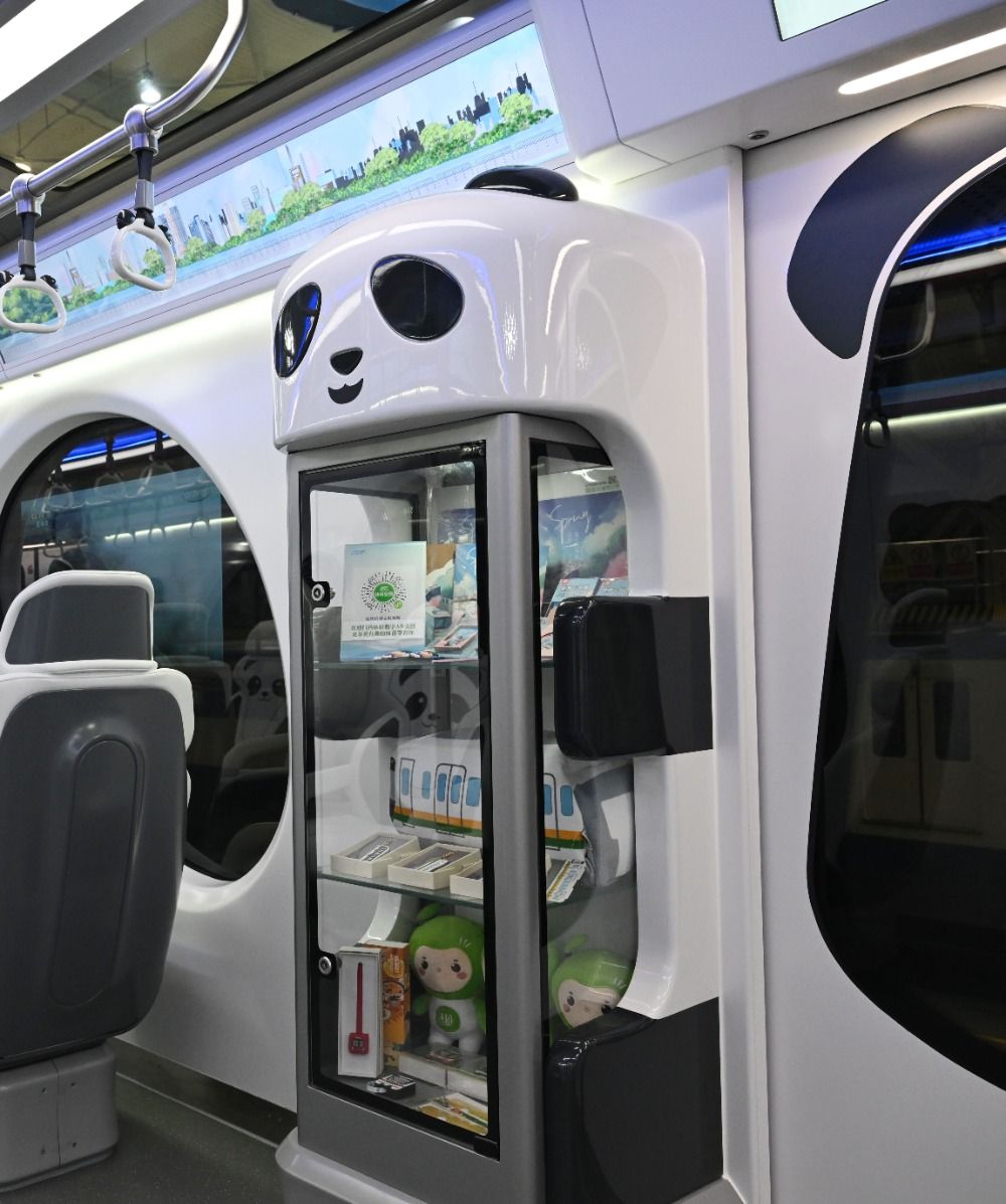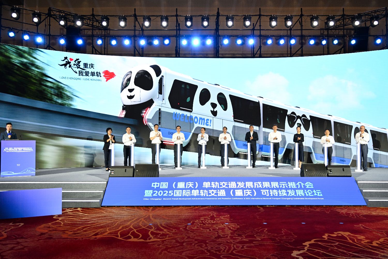 你见过“熊猫列车”吗?6月18日,“中国(重庆)单轨交通发展成果展示推介会暨2025国际单轨交通(重庆)可持续发展论坛”发布了中国首列“熊猫主题”跨座式单轨列车,其宠萌的外形和“未来感”跃出屏幕,成为全场讨论的焦点。该列车以大熊猫为设计元素,列车外观采用大熊猫经典黑白配色,车头设计为熊猫头造型,车身两侧绘制有熊猫图案,车厢内部的座椅、扶手吊环等地也随处可见大熊猫元素。现实中的它究竟有多萌?“新一代”跨座式单轨列车新在哪儿?车厢内有什么“黑科技”?让我们一起来探索一下吧~图为发布仪式。(中新社)