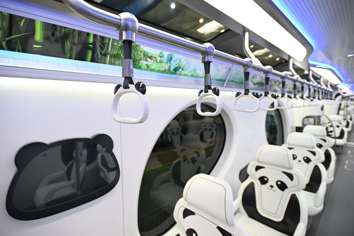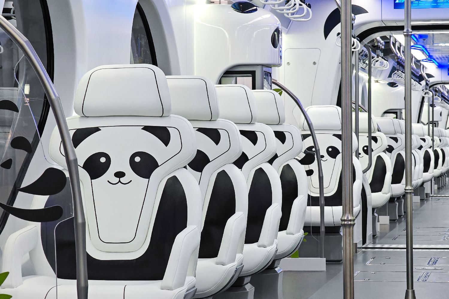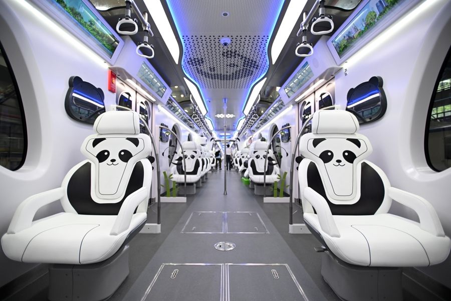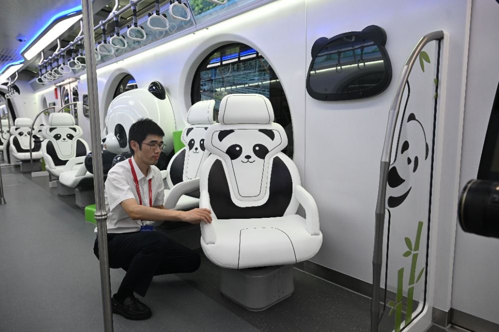 车厢内随处可见的熊猫元素。(上海上观新闻网)