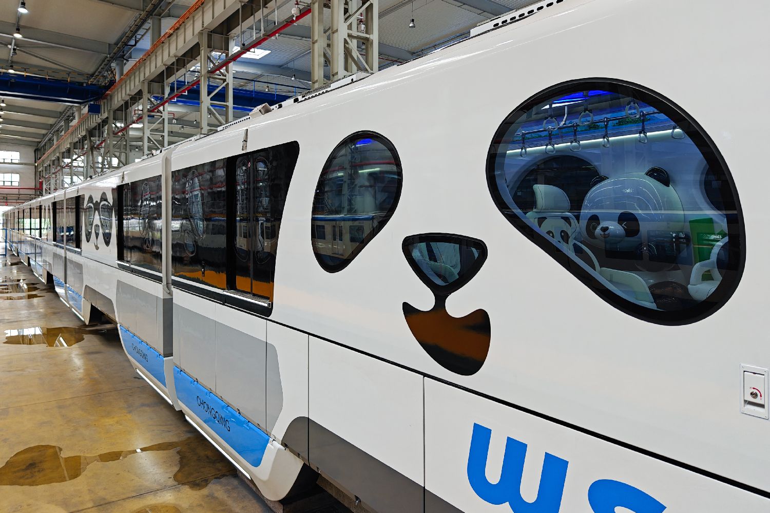 中国首列熊猫主题跨座式单轨列车亮相,就直接冲上“热搜”。这是重庆基于新一代跨座式单轨技术平台,定制打造的首列跨座式单轨列车。