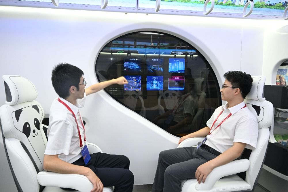 智慧照明、温控玻璃、磁力助听、无线充电等人性化设备,让车厢更具人文气息;应用的碳纤维裙板等轻量化和节能技术,可以显著提升车辆系统效率,大幅降低运营能耗。图为座椅可以旋转。(视觉重庆)