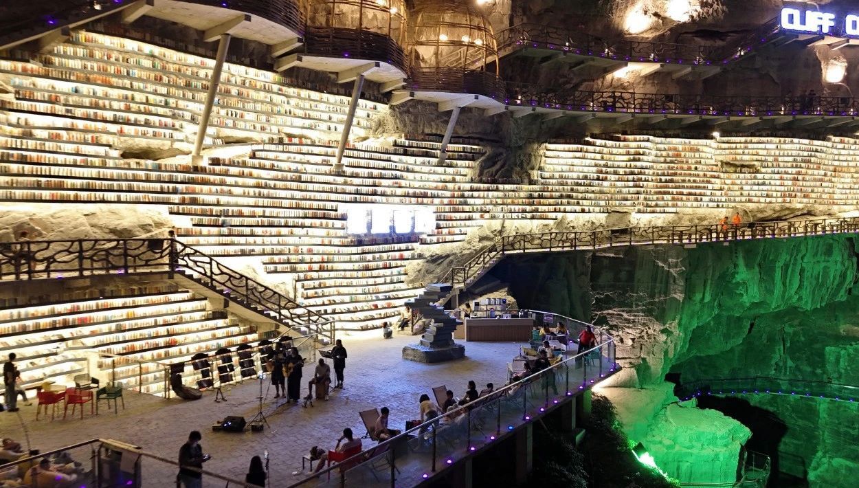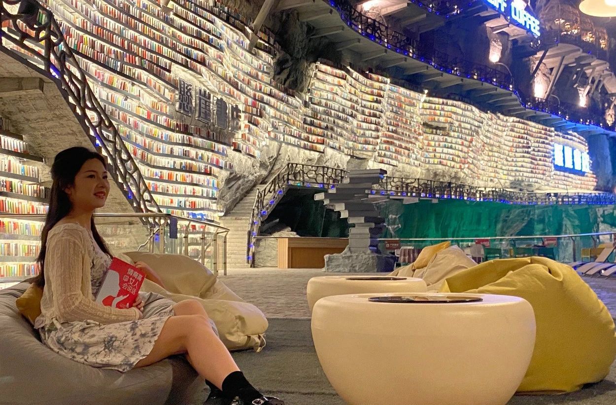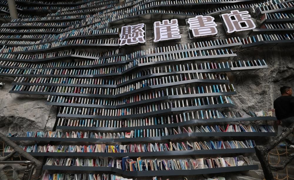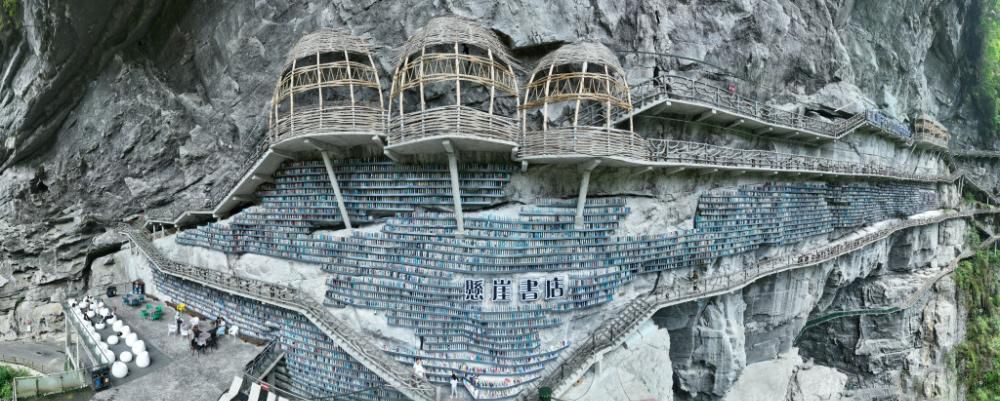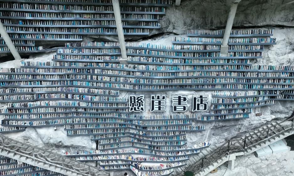 近日,中国广西河池市罗城开了一家悬崖书店,一边是几百米深的神秘天坑,一边是满墙书海。